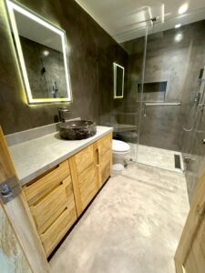 Originally built in the the 1970’s as three separate 1 bed/1 bath we have transformed them into one premium 3 bedroom/3 bathroom condominium.. From the plumbing to the electrical, everything is new. Millwork: Primavera Paint by Behr Appliances: GE Profile Countertops: Cesarstone Floors and bathroom walls: Grey Micro-Cement.